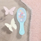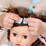 Păpușa are păr brunet care poate fi pieptănat cu o perie albastră pentru a realiza diferite coafuri.