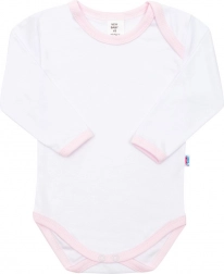 Mânecă lungă, decolteu petrecut tip plic și capse între piciorușe pentru îmbrăcare și schimbare ușoară. Materialul din bumbac este fin și respirabil.