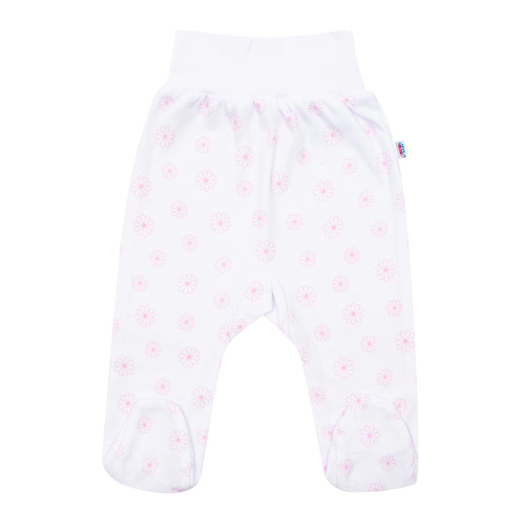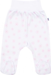 Body-ul are decolteu petrecut tip plic pentru îmbrăcare ușoară peste cap și capse practice între piciorușe pentru schimbare rapidă. Pantalonii tip polodupačky, cu talie elastică mai lată, stau bine și nu apasă pe burtică, iar tălpile închise oferă căldură și protecție. Bentița este elastică, plăcut de moale și asortată cu model floral roz deschis.