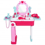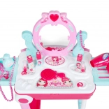 Descoperă lumea magică a machiajului și imaginației cu măsuța de toaletă pentru copii în troller 2în1 BABY MIX. La deschidere, trollerul de călătorie se transformă într-o măsuță stabilă cu oglindă în formă de inimă, care, la apăsare, se aprinde și emite un sunet delicat. Jucăria este grozavă pentru jocul de rol, susține motricitatea fină și dezvoltă creativitatea copiilor.