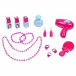 Include foen, pieptene, colier, brățări, inele, “parfumuri”, balsamuri și alte accesorii. Toate din plastic de calitate și sigure pentru jocul copiilor.