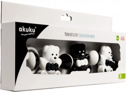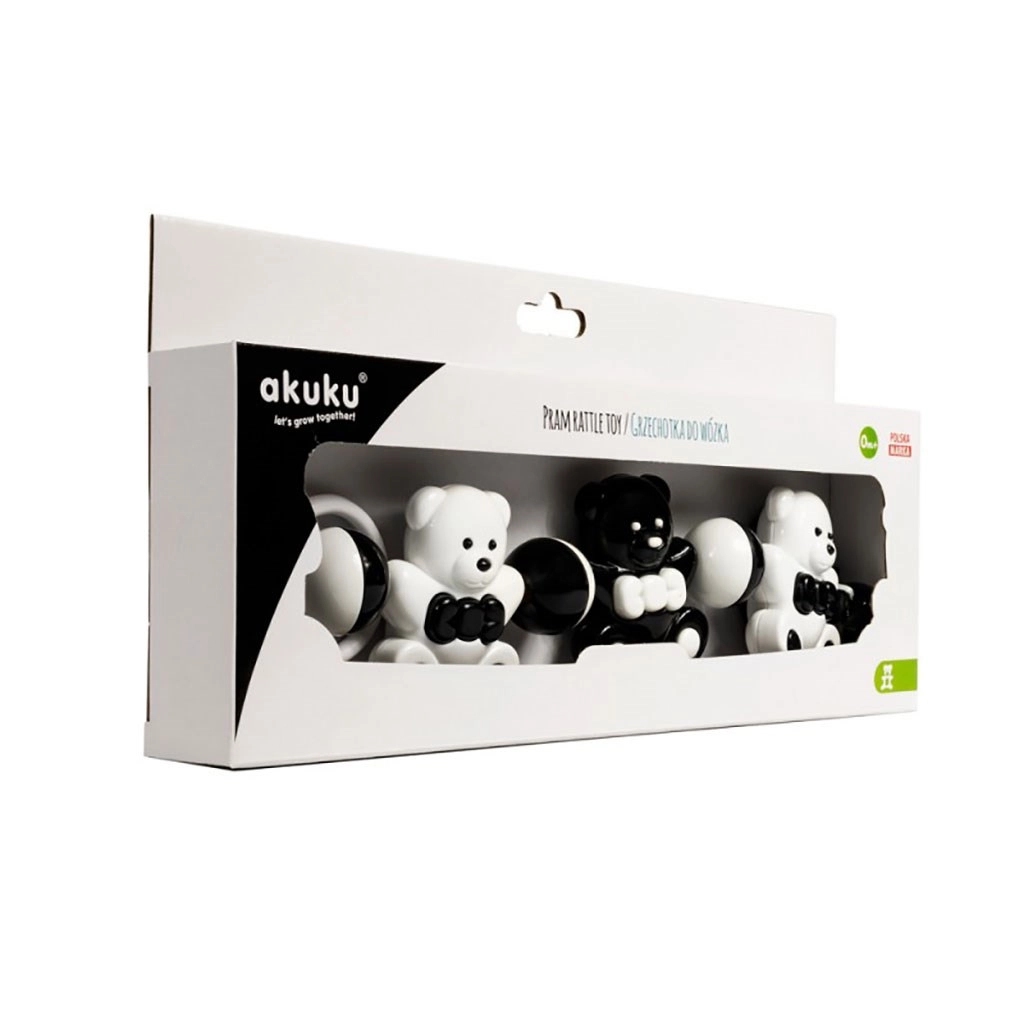 Zornăitoarea alb-negru Akuku cu ursuleți este concepută pentru cei mai mici, ajutând la dezvoltarea văzului, auzului și motricității. Culorile contrastante atrag bebelușul, zornăitul fin liniștește și stimulează simțurile. Jucăria este ușoară, plăcută la atingere și ușor de menținut curată.