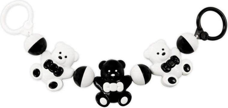 Zornăitoarea drăguță cu motiv de ursuleți de la Akuku este un accesoriu ideal pentru cărucior, pătuț și scaun auto. Datorită designului alb-negru, susține percepția vizuală a bebelușului și atrage prin sunetul delicat. Prinderea ușoară și materialele de calitate asigură utilizare sigură și durată lungă de viață. Prinderea universală permite utilizarea acasă și în călătorii.