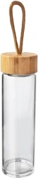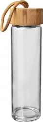 Această sticlă stilată combină designul curat cu practicitatea pentru fiecare zi. Sticla borosilicată este ușoară, rezistentă și tolerantă la șocuri termice, astfel încât vă bucurați de apă, suc, limonadă sau ceai fierbinte. Capacul natural din bambus, cu curea solidă, facilitează transportul și oferă sticlei un aspect ecologic.