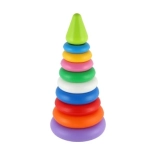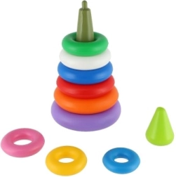 Fiecare inel are o culoare diferită, ceea ce ajută la recunoașterea culorilor și la diferențierea dimensiunilor. Copiii vor fi fascinați de culorile vii și se vor bucura să asambleze și să dezasambleze piramida din nou și din nou.