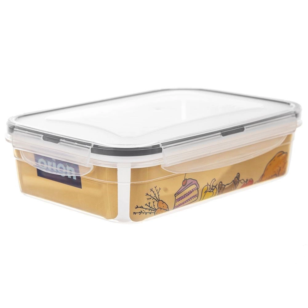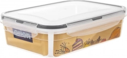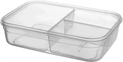 Practică și rezistentă, cutie pentru alimente de 1 l cu inserturi de separare, garnitură din silicon etanșă și patru cleme de închidere. Realizare transparentă pentru verificarea instantă a conținutului, fără BPA, potrivită pentru mașina de spălat vase, cuptorul cu microunde (fără capac), frigider și congelator. Ideală ca lunch box pentru serviciu, școală și călătorii.