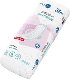 Absorbante postpartum ultrasorbante și respirabile din bumbac organic, cu aripioare, pentru confort maxim și discreție. Sunt hipoalergenice, fără clor și metale grele, neutralizează eficient mirosurile și, datorită formei speciale și benzii adezive, rămân sigur pe poziție chiar și în timpul mișcării.