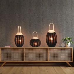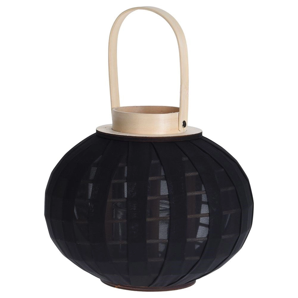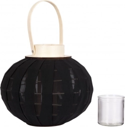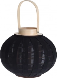 Lampion negru elegant cu mâner din lemn natural, creează o atmosferă plăcută și ascunde în siguranță flăcăruia într-un cilindru de sticlă. Datorită dimensiunilor compacte de 22 × 24 cm, este potrivit pentru masă, raft sau ca decorațiune pe terasă ori balcon.