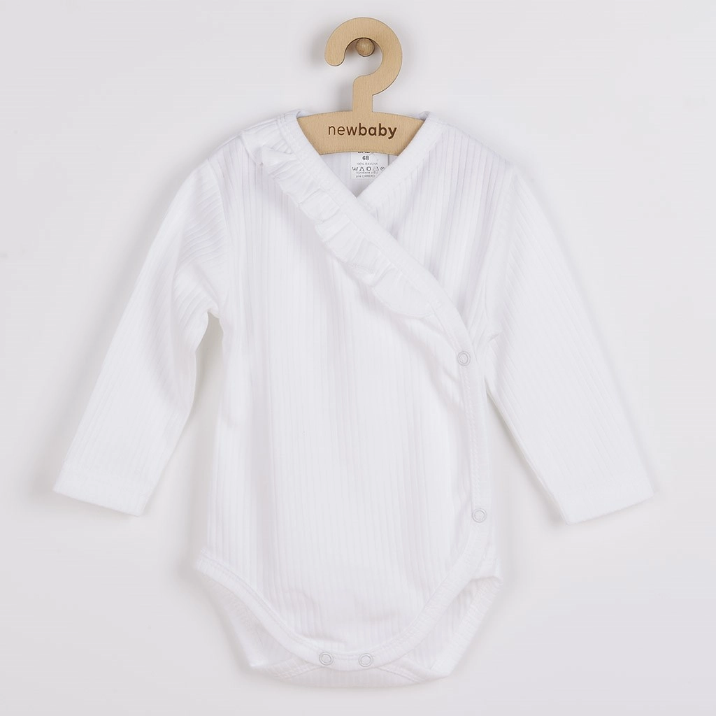 Tricotul din bumbac nervurat, ușor și respirabil, este blând cu pielea sensibilă a copilului, nu zgârie și nu irită. Aspectul atemporal în dungi, în culoarea albă, este ideal atât pentru acasă, cât și pentru deplasări. Perfect ca bază în garderoba nou-născuților și sugarilor.