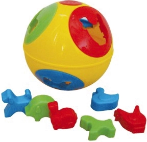 Inserție distractivă din plastic în formă de minge cu diametrul de 13 cm, care susține motricitatea fină, coordonarea mișcărilor și recunoașterea formelor. Conține 6 forme de animăluțe și este ideală pentru copii de la 12 luni. Disponibilă în două variante de culoare.