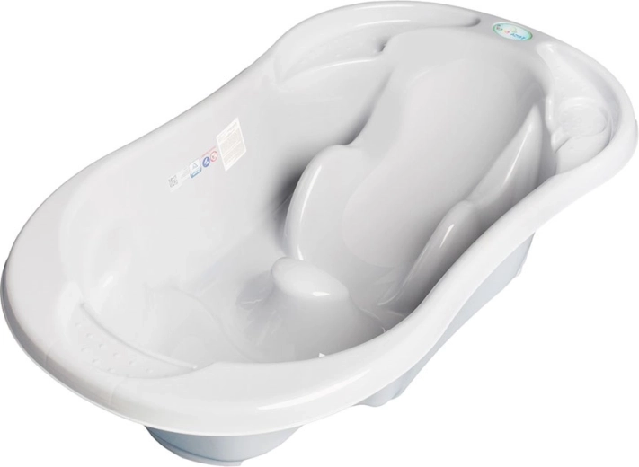 Cădița pentru copii KOMFORT 2în1, practică și sigură, oferă formă ergonomică pentru bebeluși și toddleri, inserție anatomică interioară pentru poziția întins, șezut confortabil pentru copiii mai mari și scurgere pentru golire ușoară. Datorită compartimentelor pentru săpun sau burete, întreținerii facile și plasticului non-toxic, este alegerea ideală pentru baia zilnică.