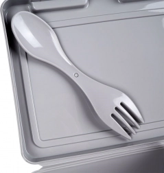 - Combinație lingură/furculiță 2în1, lungime 14,5 cm, depozitat sub capac