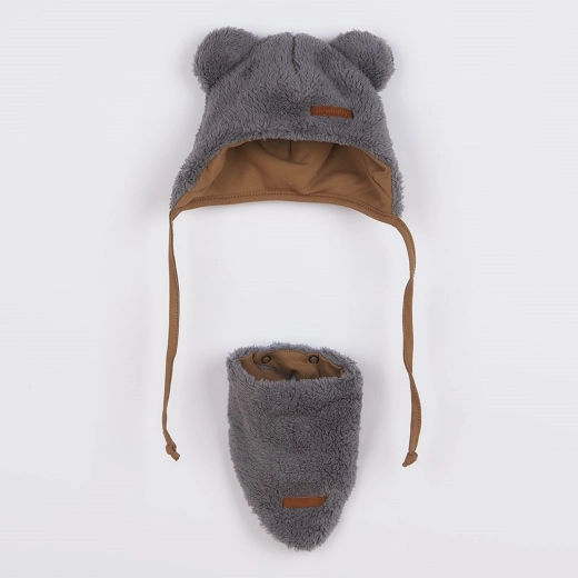 Set de iarnă practic pentru bebeluși de la NEW BABY din colecția Teddy bear, include o căciuliță călduroasă cu căptușeală și o bandană reglabilă pentru gât. Căciula este modelată pe urechiușe, are legare cu șnururi și stă excelent pe căpușor. Bandana se poate închide în 2 mărimi, astfel încât crește odată cu copilul. Materialul welsoft moale încălzește și asigură confort iarna și toamna.