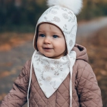 Oferă-i bebelușului tău confort și protecție în vreme rece. Setul NEW BABY Special One include o căciuliță căptușită care acoperă urechiușele și se fixează excelent datorită șnururilor de legare, plus o eșarfă asortată pentru gât cu două poziții de închidere. Țesătura fină cu imprimeu floral este plăcută la atingere și totodată stilată.