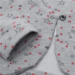 Descoperă setul NEW BABY Emma – o combinație atent gândită de practic și farmec pentru fetița ta. Fustița cu croi în A și imprimeu integral cu steluțe are talie elastică mai lată pentru o purtare confortabilă. Boleroul cu mânecă lungă se închide cu un singur nasture, facilitând îmbrăcarea. Bentița lată și elastică poate înlocui perfect căciulița pe vreme ușor răcoroasă.