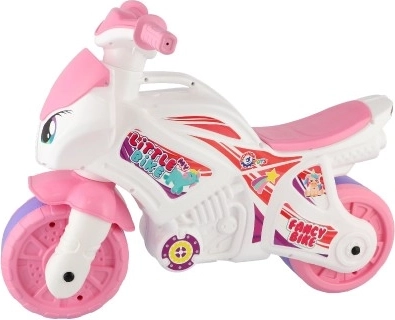 Această frumoasă motocicletă pentru copii este ideală pentru cei mai mici. Este echipată cu roți late care asigură stabilitate și o deplasare ușoară. Datorită materialului plastic de calitate, este rezistentă și face față utilizării solicitante. În plus, motocicleta este împodobită cu autocolante frumoase și colorate, care îi sporesc atractivitatea.