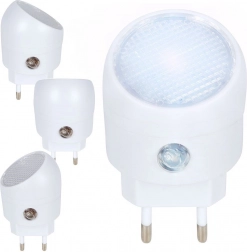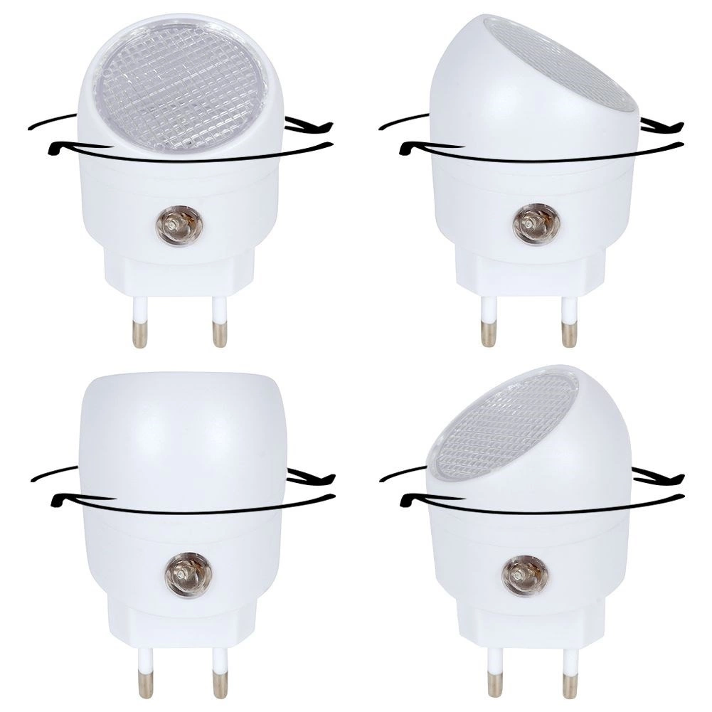 Lumină de noapte LED compactă pentru priză, cu senzor de amurg, se aprinde automat pe întuneric și se stinge ziua. Datorită consumului redus de 1 W și alimentării direct din priza de rețea 220 V, este ideală pentru camera copilului, hol sau dormitor. Cap rotativ 360° pentru a orienta lumina difuză exact acolo unde ai nevoie. Design alb elegant din plastic de calitate care se potrivește oricărui interior.