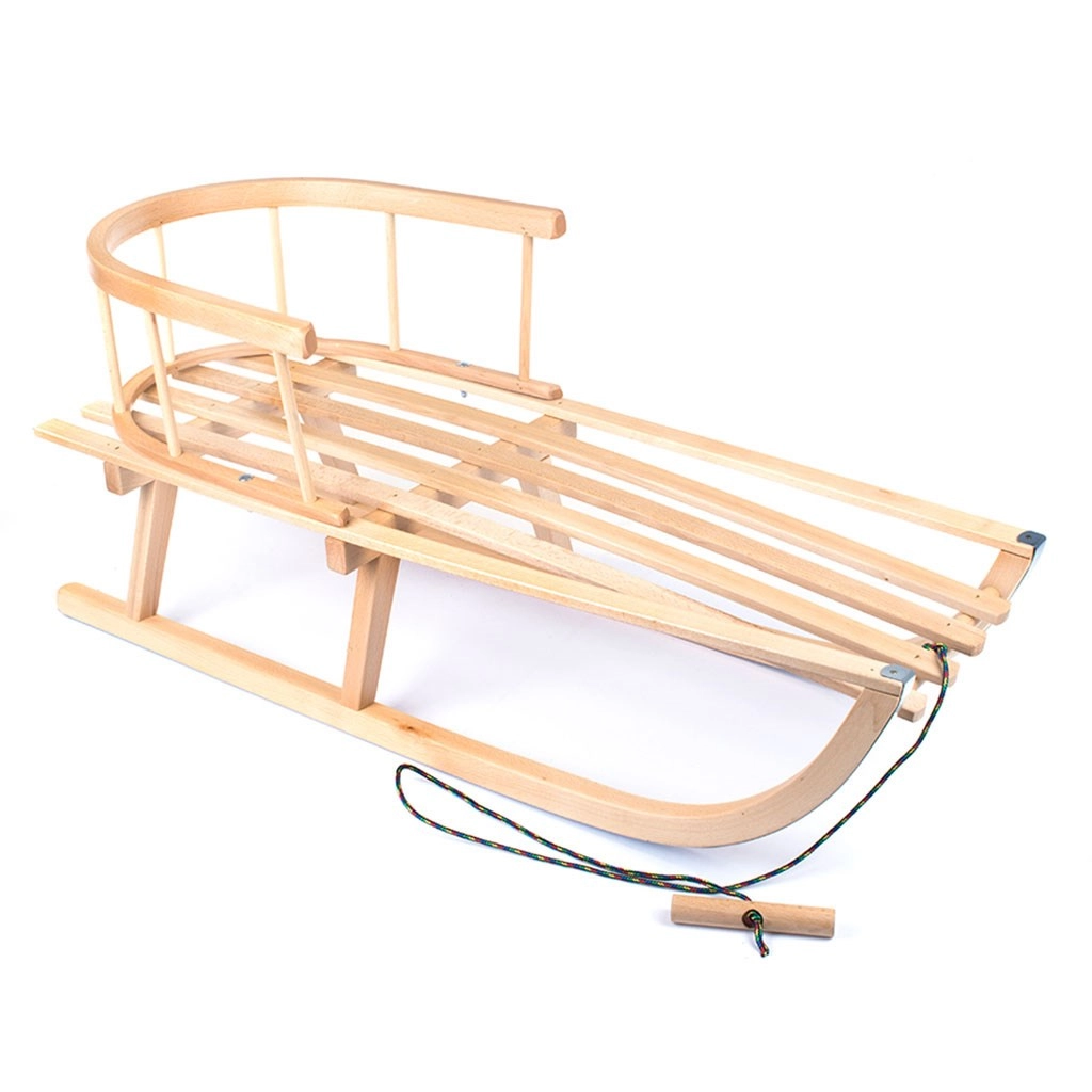 Săniuțe clasice pentru copii din lemn de fag de înaltă calitate pentru distracție de iarnă în siguranță. Oferă structură solidă, spătar confortabil și șnur de tractare cu mâner din lemn. Lacul ecologic natural protejează lemnul și păstrează frumoasa sa textură, capacitatea de încărcare fiind de până la 100 kg.