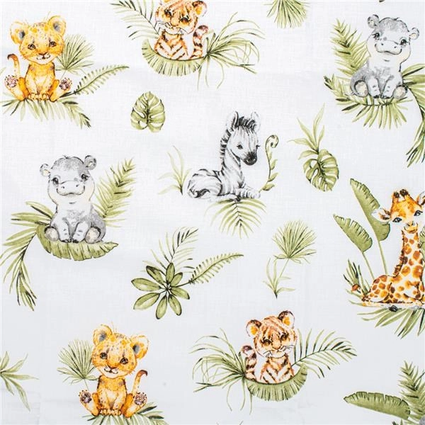 Set drăgălaș de lenjerie pentru pătuț, format din 3 piese, din 100% bumbac plăcut la atingere, cu motiv Jungle, care asigură bebelușului un somn liniștit și sigur. Setul conține față de pernă 40×60 cm, față de pilotă 100×135 cm și apărătoare 31×175 cm. Materialele sunt blânde cu pielea copilului, cu culori rezistente și au fermoare sigure, fără capete libere atârnate.