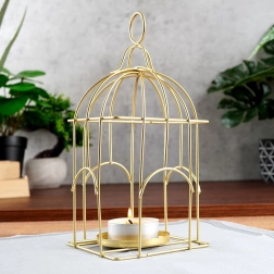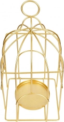 Un lampion metalic stilat, în formă de colivie, aduce iluminare ambientală elegantă în orice interior. Datorită construcției metalice robuste în finisaj auriu și ochiului practic pentru transport sau agățare, este ideal pentru lumânări tip pastilă și lumânări cu diametrul de până la 7,5 cm. Designul minimalist LOFT/industrial completează perfect livingul, dormitorul și zona de dining.