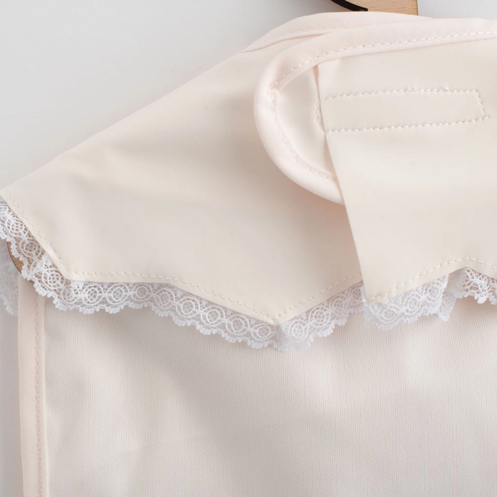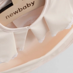 Bavețica elegantă pentru fetițe NEW BABY, cu dantelă fină, îmbină un design frumos cu funcționalitate ridicată. Datorită poliesterului 100% moale, este ușoară, blândă cu pielea copilului și ușor de întreținut – este suficient să fie ștearsă cu o cârpă umedă sau spălată la mașină.