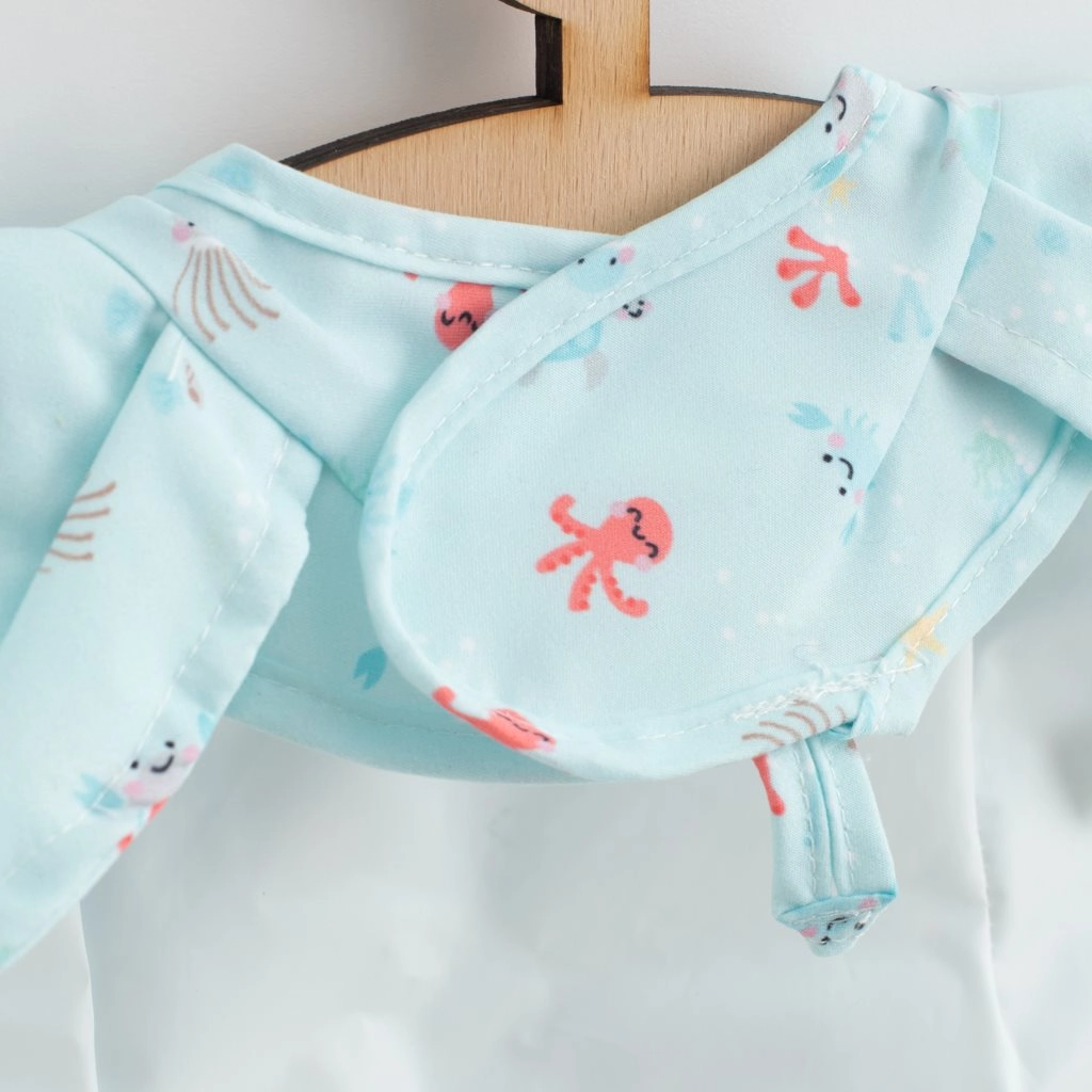 Bavetă stilată pentru fetițe cu volănașe de la marca New Baby protejează fiabil hainele la masă și la joacă. Este realizată din poliester ușor, are închidere confortabilă cu scai, buzunar practic, moale și partea inferioară cu strat impermeabil. Se întreține ușor – este suficient să fie ștearsă sau spălată la mașină.