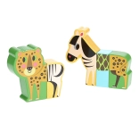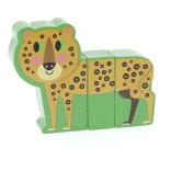 Puzzle-ul din lemn Safari vesel le oferă copiilor de la 2 ani o distracție diferită: fiecare animăluț este format din piese masive cu magneți ascunși, care se îmbină lin. Piesele pot fi schimbate între animale pentru a crea amuzanți „hibrizi” ce stimulează imaginația și curiozitatea.