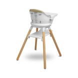 Picioarele din lemn masiv cu capete antiderapante și centura de siguranță în 5 puncte mențin copilul în siguranță la fiecare masă.