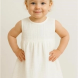 Rochiță muselin ușoară și respirabilă pentru bebeluși de la New Baby, care va încânta orice mică domnișoară. Croială fără mâneci în formă de A, fustiță ușor plisată și închidere practică cu capsă la spate pentru îmbrăcare și purtare confortabile. Muselin din 100% bumbac, moale, delicat cu pielea sensibilă și excelent respirabil.