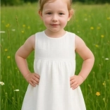 Croiala practică fără mâneci, în formă de A, cu fustiță frumos încrețită, oferă confort și libertate de mișcare. Închiderea cu capsă la spate facilitează schimbarea rapidă. Muselina este în mod natural respirabilă, reduce riscul de supraîncălzire și devine și mai moale și mai plăcută cu fiecare spălare.