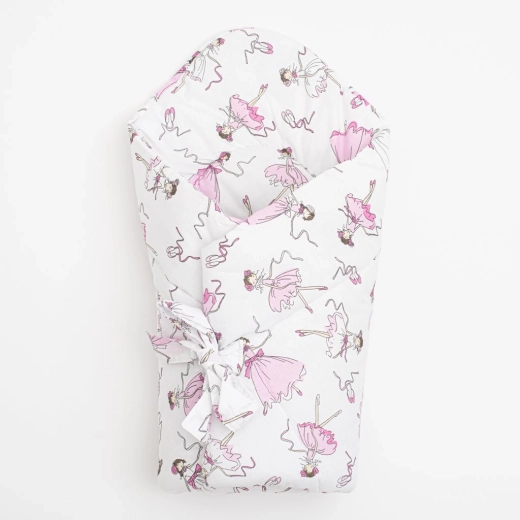 Scutecul înfășat pentru bebeluși New Baby Ballerina Bella, moale și sigur, oferă bebelușului confort și căldură din primele zile de viață. Este confecționat din 100% bumbac cu umplutură hipoalergenică din poliester și este decorat cu un imprimeu delicat cu balerină dansând. Sistemul practic de legare cu șnur asigură strângerea ușoară după necesități. Dimensiune aprox. 75 × 75 cm.