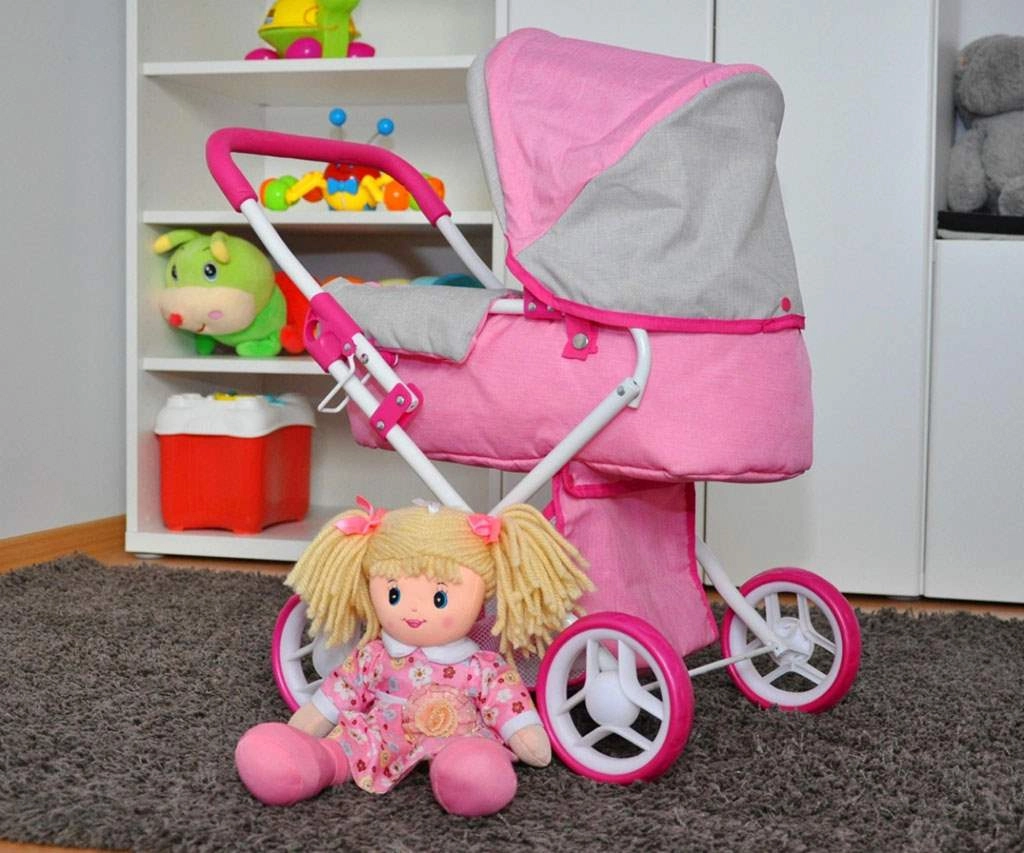 Căruciorul pentru păpuși MILLY MALLY Alice Prestige Pink imită fidel un cărucior adevărat. Landoul adânc, detașabil, servește și ca leagăn portabil, în care încape confortabil o păpușă de până la 40 cm. Datorită construcției compacte, căruciorul se transportă și se depozitează ușor, iar husa din poliester se poate spăla fără efort.