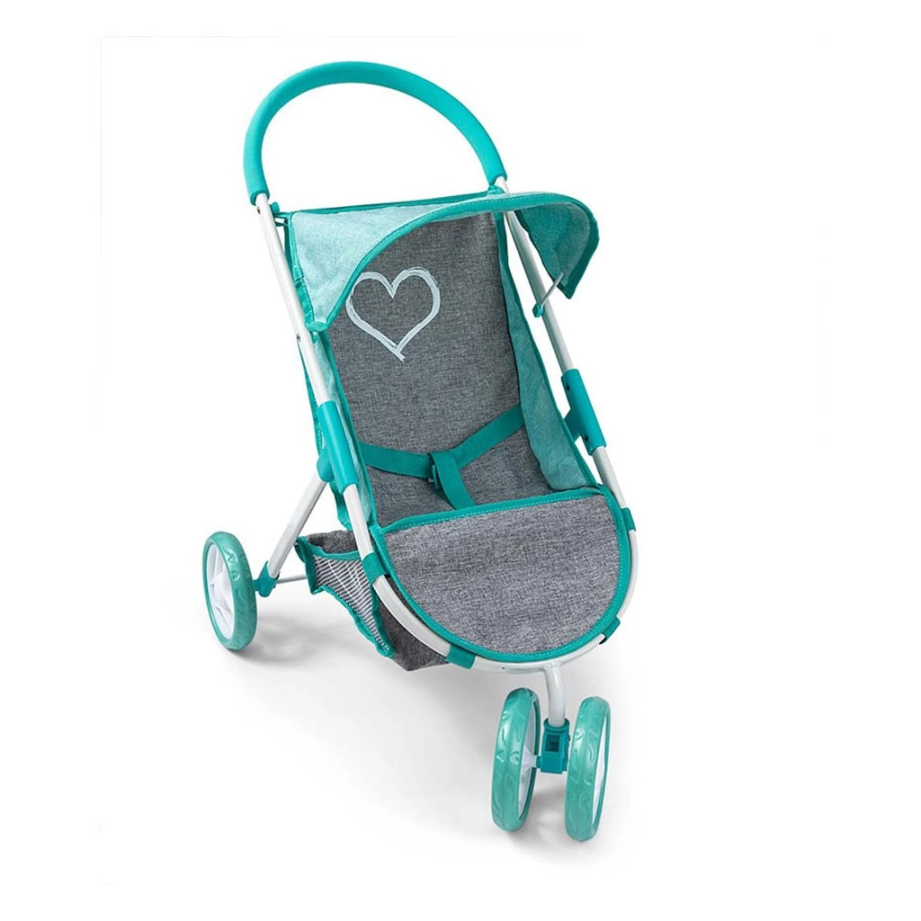 Capotina protejează păpușa de soare, iar coșul de sub șezut oferă spațiu pentru accesorii și jucării.