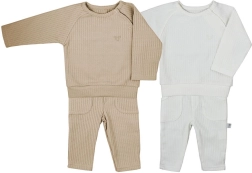 Descoperă confortul și stilul pentru purtare zilnică cu setul din 2 piese Koala Bello. Datorită 95% bumbac, setul este plăcut moale și respirabil, iar 5% elastan asigură elasticitate mai bună și libertate de mișcare. Noul material cu textură și model interesante oferă un aspect modern pe care îl vei îndrăgi.
