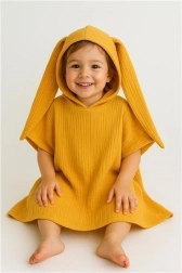 Oferiți copiilor confort după fiecare baie și joacă în apă. Poncho-ul din muselină, din bumbac 100% fin, este ușor, aerat și foarte absorbant, astfel încât servește perfect ca prosop și protecție împotriva vântului și frigului. Croiala lejeră, atemporală, cu glugă și urechiușe îi va încânta pe micii aventurieri și va asigura purtare comodă pe tot parcursul anului.