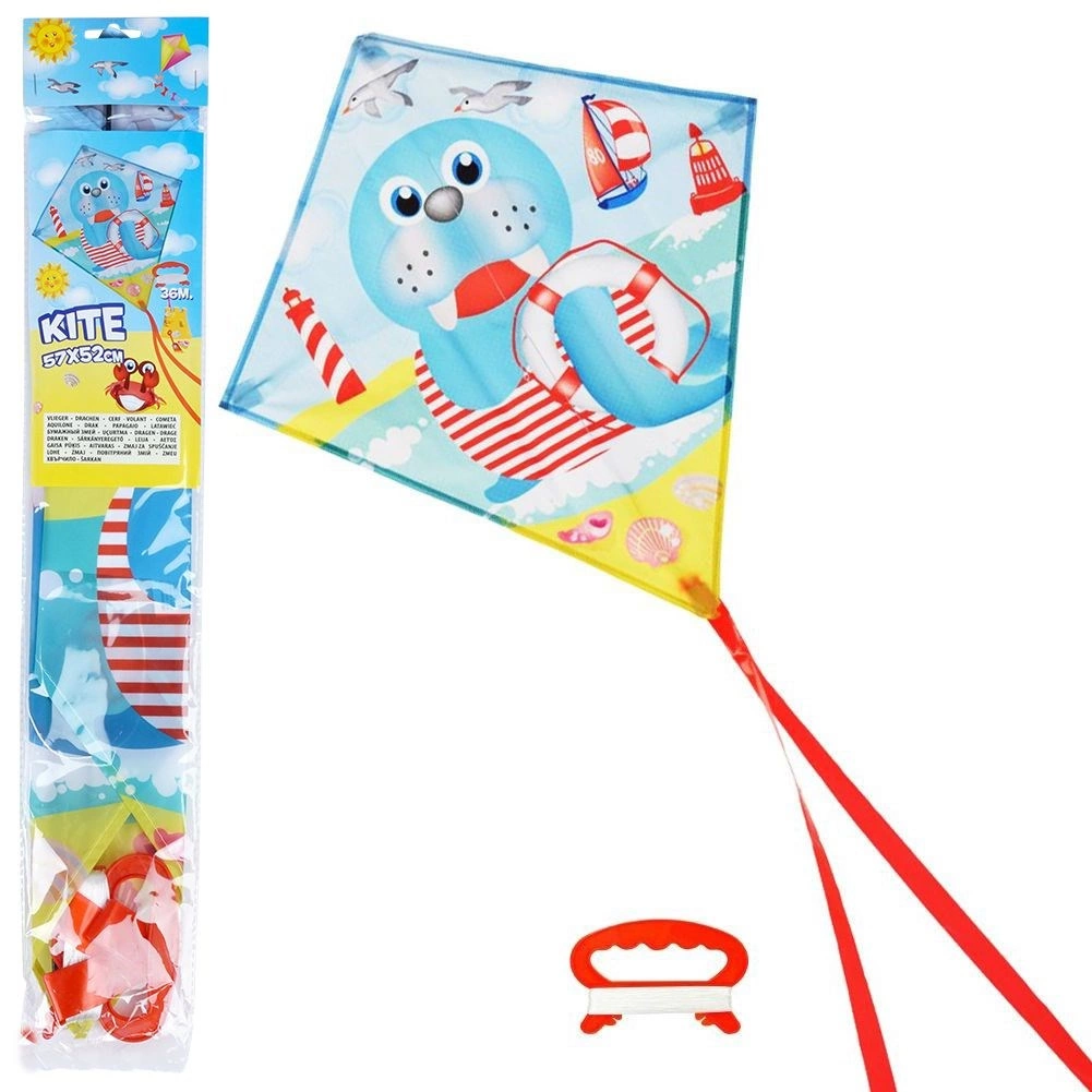 Bucurați-vă de distracția în aer liber cu un zmeu colorat, având motivul unei foci adorabile. Zmeul este ușor, se ridică ușor în aer, iar panglicile sale lungi creează o urmă atrăgătoare în timpul zborului. Datorită construcției robuste din poliester și mânerului comod, este ideal atât pentru copii, cât și pentru adulți.
