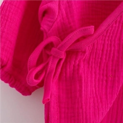 Legarea practică în lateral facilitează îmbrăcarea și dezbrăcarea, astfel încât rochia este o alegere excelentă atât pentru purtare zilnică, cât și pentru momente festive. Muselina se remarcă prin rezistență – suportă fără probleme spălări frecvente și în timp devine și mai fină.