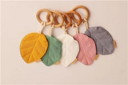 Jucăria de dentiție New Baby Leaf, în culoare gri, oferă bebelușilor alinare imediată în perioada erupției dentare. Combinația de lemn de fag natural și țesătură moale din muselină este blândă cu gingiile și sigură pentru utilizarea zilnică. Poate fi folosită și ca jucărie senzorială pentru bebeluși și se potrivește perfect cu alte produse din muselină ale brandului.