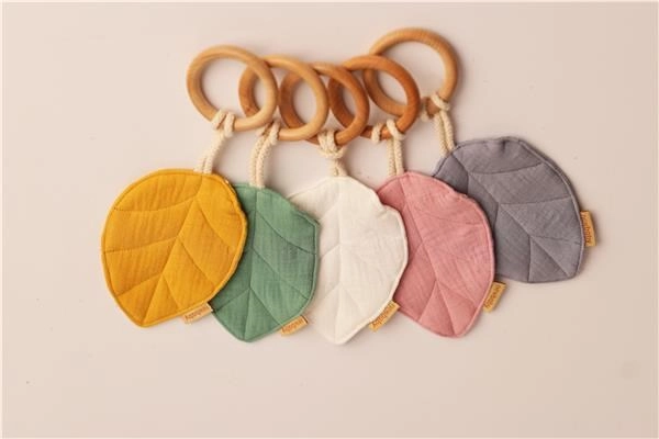 Jucăria de dentiție cu frunze New Baby Leaf este concepută pentru a calma gingiile sensibile și, în același timp, pentru a sprijini dezvoltarea senzorială a bebelușului. Inelul ergonomic din lemn se prinde ușor chiar și de mânuțele mici, iar muselina fină mângâie plăcut și liniștește.
