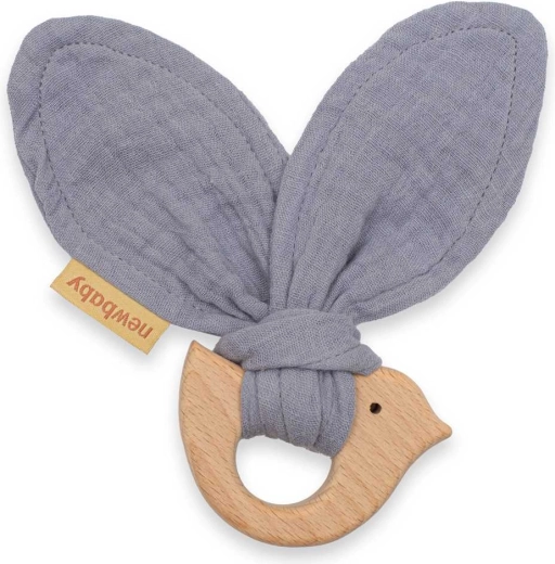 Jucăria de dentiție cu păsărelă New Baby Bird, în nuanță elegantă de gri, este concepută pentru confortul și siguranța maxime ale copilului. Lemnul de fag natural este neted, durabil și blând cu gingiile sensibile, în timp ce muselina din bumbac 100% organic este moale, respirabilă și plăcută la atingere. Împreună formează un accesoriu practic și estetic pentru utilizare zilnică.