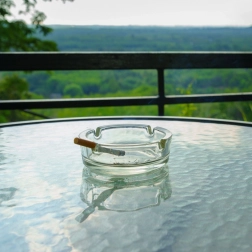Scrumiera rotundă din sticlă este o alegere de încredere pentru locuințe, terase, balcoane și grădini. Sticla transparentă și forma clasică asigură un aspect atemporal și o curățare ușoară. Datorită construcției robuste, este potrivită și pentru restaurante, baruri sau hoteluri.