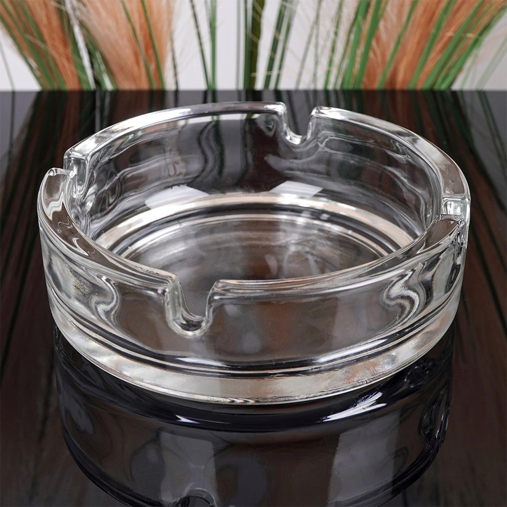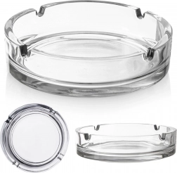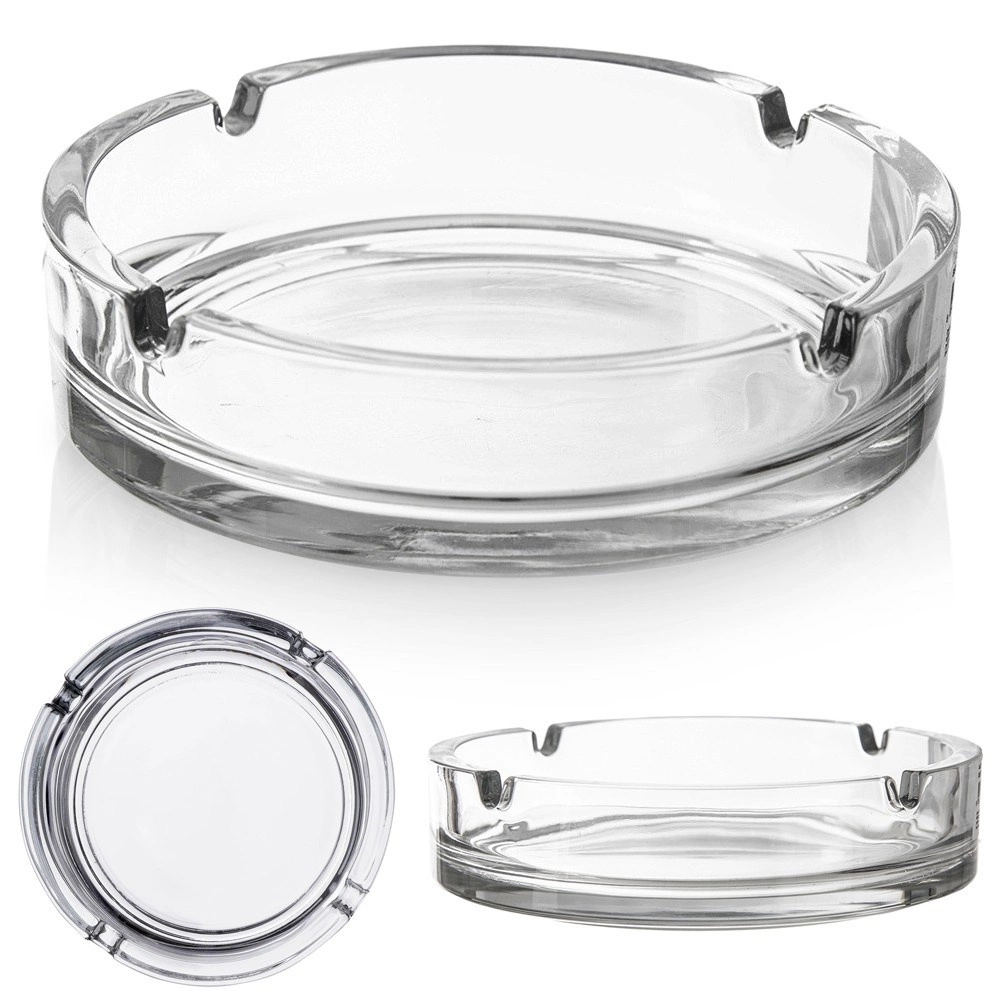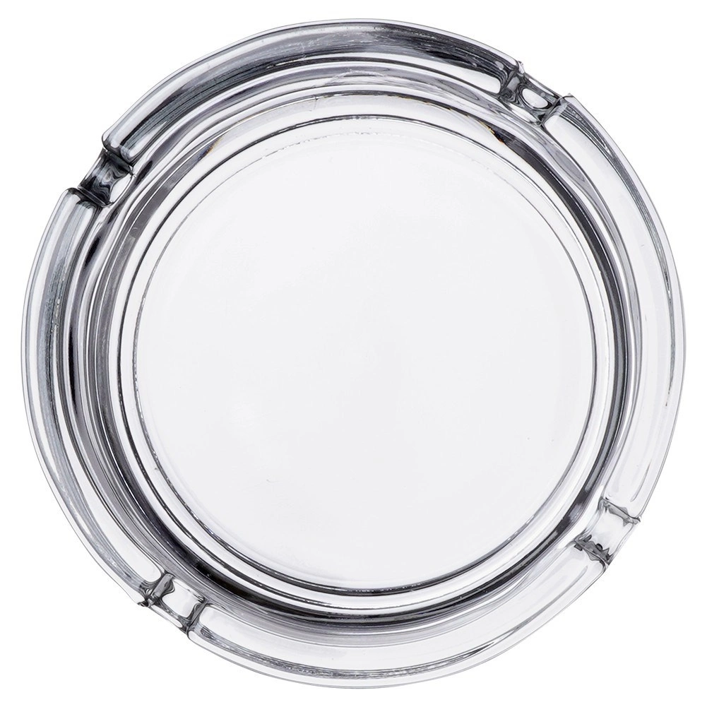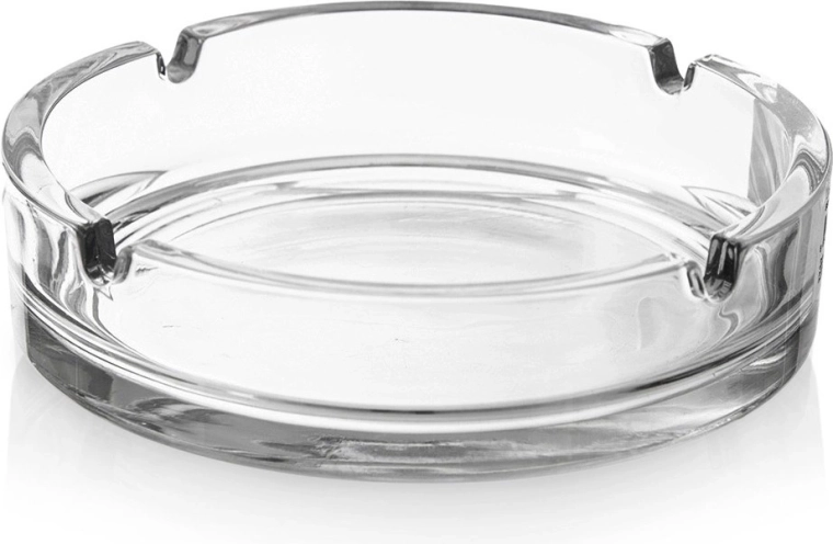 Scrumieră practică din sticlă, cu diametrul de 10 cm, design clasic pentru utilizare zilnică acasă și în spații comerciale. Datorită celor patru crestături permite depozitarea comodă a țigărilor, este fabricată din sticlă transparentă de calitate și, prin aspectul universal, se potrivește în orice interior și exterior.