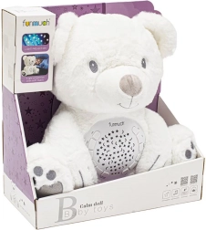 Ursul polar de pluș cu proiector și muzică este ajutorul ideal pentru adormirea liniștită a copiilor. Este realizat din material moale și plăcut la atingere și oferă proiecția steluțelor colorate și a lunii pe perete sau tavan. Datorită zgomotului alb și muzicii fine, liniștitoare, creează un mediu relaxant pentru un somn ușor.