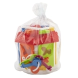 Caseta de sortare în formă de căsuță este adaptată pentru cei mai mici, pentru a învăța într-un mod distractiv recunoașterea diferitelor forme geometrice și culori. Este alcătuită dintr-o căsuță cu deschideri pe acoperiș pentru introducerea formelor din plastic. Ușile colorate se deschid cu ajutorul cheilor, oferind copiilor un nivel suplimentar de interacțiune și susținând răbdarea și rezolvarea problemelor.