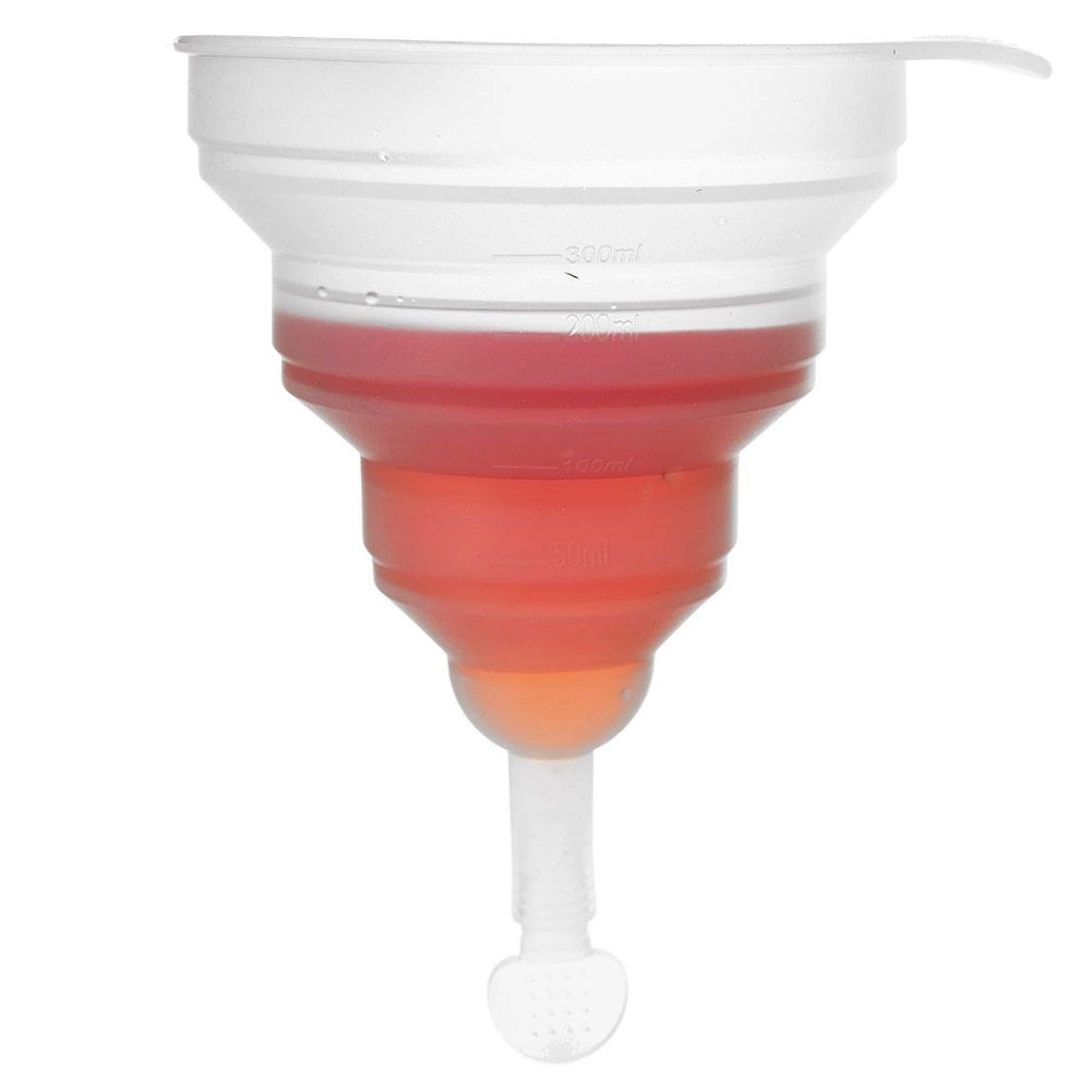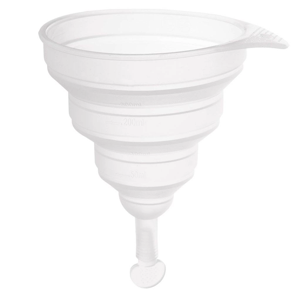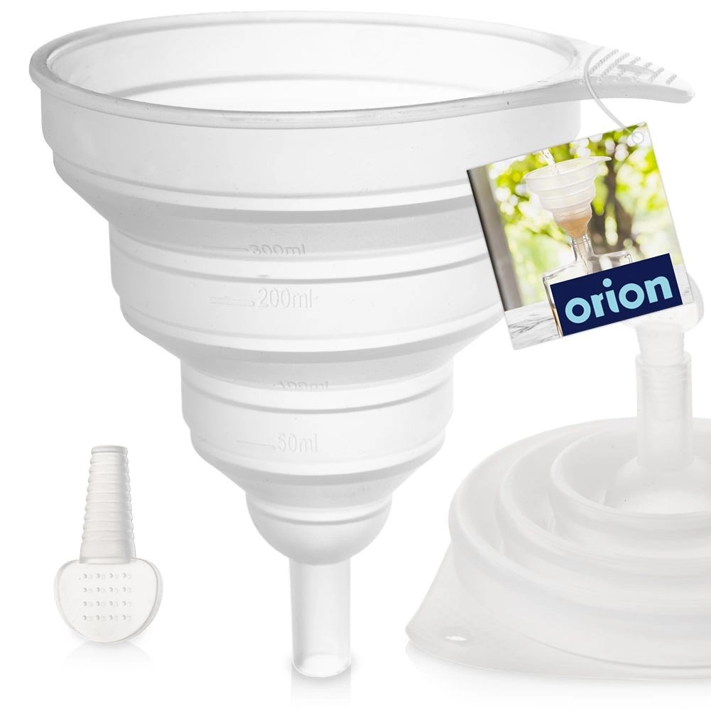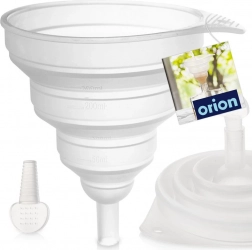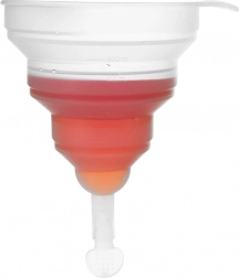 Pâlnie de bucătărie pliabilă, cu diametrul de 12 cm și înălțimea de 17 cm, cu dop și măsură integrată. Fabricată din silicon rezistent, economisește spațiu în sertar și este potrivită pentru umplerea sticlelor și a recipientelor. Rezistă la temperaturi de până la 100 °C și poate fi spălată în mașina de spălat vase (fără dop). Ideală pentru transferul sucurilor, lichiorurilor, vinului sau berii și pentru măsurarea precisă a 50–300 ml. Material rezistent, construcție pliabilă, scară gradată, întreținere ușoară.