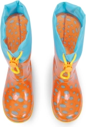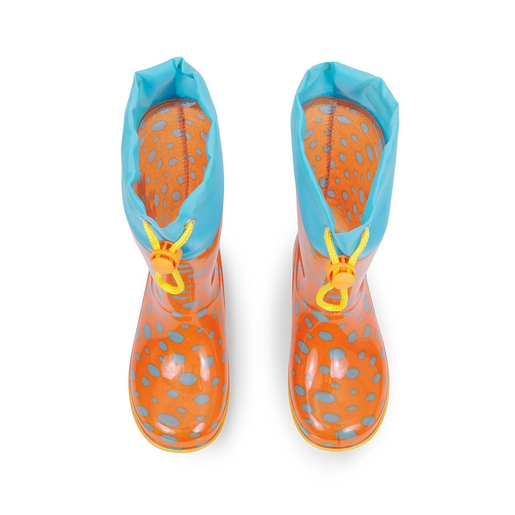 Partea superioară din cauciuc și marginea înălțată mențin picioarele copiilor uscate chiar și când sar prin bălți.