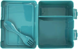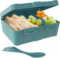 Lunchbox ușor și durabil, ajută la transportul și păstrarea comodă a mâncării, menține prospețimea și aroma și reduce nevoia ambalajelor de unică folosință. Tacâmul integrat 2‑în‑1 (lungime 14,5 cm) are locul său sub capac, fiind mereu la îndemână. Cutia este din materiale sigure pentru contactul cu alimentele și potrivită pentru uzul zilnic la școală, serviciu, excursii și călătorii.