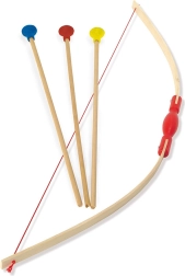 Set de tir cu arcul distractiv și sigur pentru micii indieni de la VILAC. Conține un arc din lemn și 3 săgeți cu ventuze colorate pentru joacă fără griji atât în interior, cât și în exterior. Include și o țintă de decupat din cutie. Fabricat în Franța. Antrenează precizia, abilitățile de coordonare și susține jocul activ.