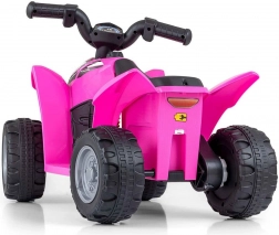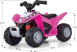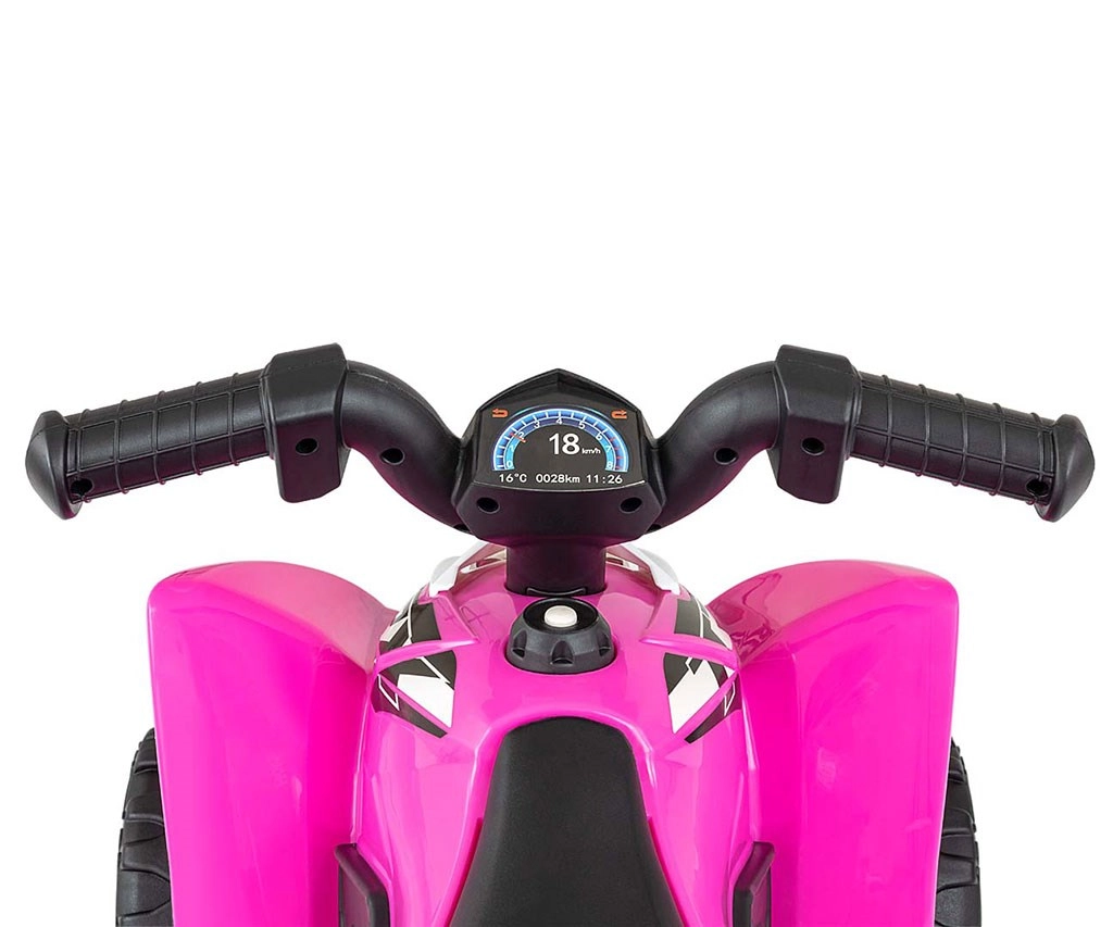 Acest ATV electric pentru copii, în culoare roz, îmbină designul sportiv cu o construcție sigură. Datorită aspectului licențiat HONDA și execuției de calitate din materiale rezistente, micii șoferi se vor bucura de distracție realistă. La apăsarea pedalei, ATV-ul pornește și se aprinde farul frontal, amplificând senzația de condus.