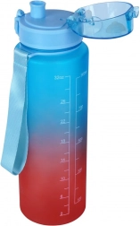 Aspectul ombré în nuanțe de albastru și roșu transformă sticla într-un accesoriu stilat pentru antrenament, birou sau școală. Curelușa pentru încheietură asigură transportul comod și posibilitatea de prindere de rucsac. Sticla este ideală pentru apă, sucuri sau limonadă și este perfectă pentru sport, drumeții, picnicuri și utilizarea zilnică.